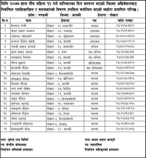 कास्की जिल्ला समिति Member NameDesignation Phone Number Member NameDesignation Phone Number Member NameDesignation Phone Number Member NameDesignation Phone Number Member NameDesignation Phone Number Member NameDesignation Phone Number Member NameDesignation Phone Number Member NameDesignation Phone Number Member NameDesignation Phone Number